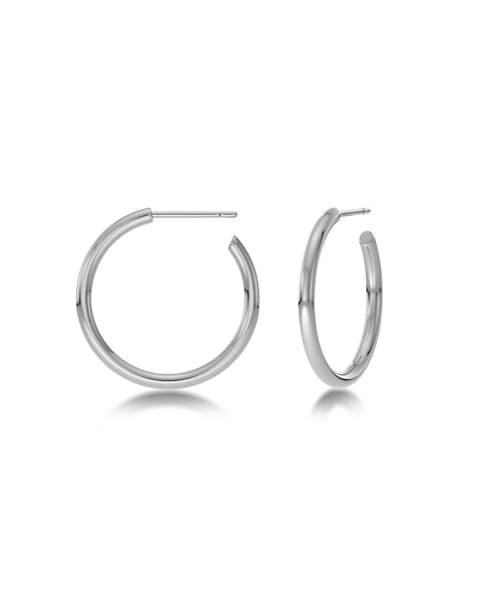 Το Hoops είναι μια σειρά από απλά, κλασικά σκουλαρίκια διαθέσιμα σε τρία μεγέθη και χρώματα. Οι κρίκοι που εμφανίζονται εδώ είναι σε ασημί χρώμα από ατσάλι και ασήμι 925.