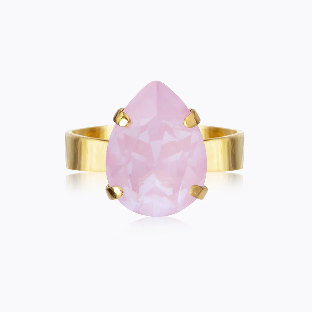 To Mini Drop Ring είναι διακοσμημένο με κρύσταλλο Swarovski σε απαλό ροζ- μωβ χρώμα και είναι επιχρυσωμένο 18 καρατίων.